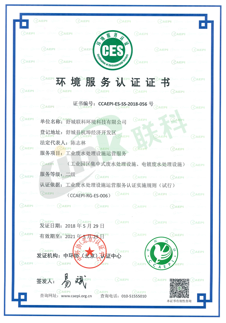 我公司于2018年5月份取得《環(huán)境服務(wù)認證證書》