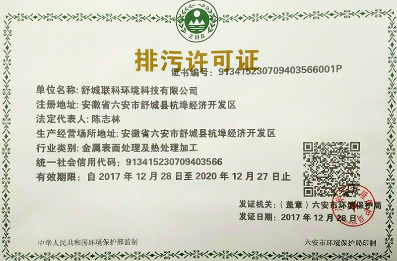 我公司于2017年12月份取得《排污許可證》,現(xiàn)對外公開。