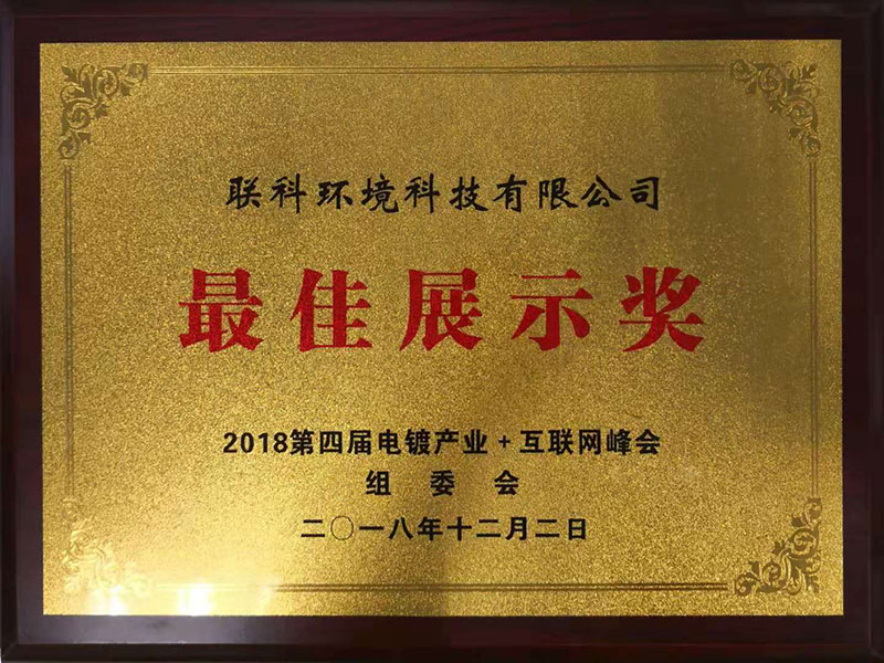 聯科環(huán)境在此次會議中具有出色的表現,得到電鍍同仁們的一致認可,獲得本次峰會的最佳展示獎,聯科環(huán)境陳總上臺領獎合影,并進行獲獎致辭。
